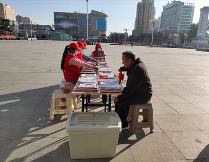 秋日暖阳照在志愿者们的脸上,蓬勃的朝气在身上散发。早上8:20分,身穿志愿马甲,戴着志愿帽的志愿者们有序的乘车前往东方红志愿亭。在九点准时到达后,志愿者们饱含热情,搭遮阳棚,摆好桌子,将书籍有序的排放好,一切都有条不絮的进行,并热情的欢迎每一位市民的到来,因为它承载太多梦与理想。